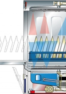 Gewerbliche Geschirrspülmaschinen reinigen das Spülgut in kurzen Spülzeiten nach dem Umwälzverfahren mit einer kontinuierlich sich regenerierenden Reinigerflotte. Das heißt, das Wasser bzw. die Reinigerflotte werden permanent über das Geschirr gespült.