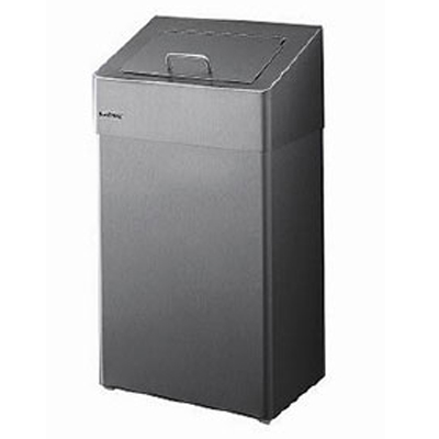 Abfallbox mit Hygienebeutelspender für die hygienische Entsorgung von Damenbinden für Toiletten in medizinischen und öffentlichen Einrichtungen mit Polybeutelsicherung und Hygienebeutelspender für Toiletten in medizinischen und öffentlichen Einrichtungen.
