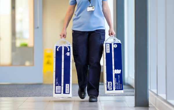 Bereits heute bestehen fast 90% aller Verpackungen von Tork aus erneuerbaren Ressourcen wie Papier oder Pappe, die beide recycelbar sind. Die verbleibenden 10% Verpackungsmaterial bestehen aus Plastik, wovon wiederum möglichst 30% aus recyceltem Plastik bestehen. Das große Ziel: Bis zum Jahr 2025 sollen ausschließlich recycelbare Verpackungslösungen für alle Tork Produkte verwendet werden.