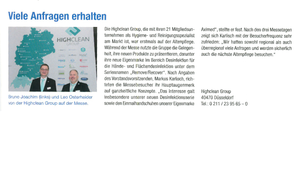 Die Highclean Group, die mit ihren 21 Mitgliedsunternehmen als Hygiene- und Reinigungsspezialist am Markt ist, war erstmals auf der Altenpflege.