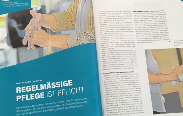 Berufsbedingte Hauterkrankungen nehmen nach wie vor mit einem Anteil von über 20 Prozent eine Spitzenposition bei den angezeigten Berufserkrankungen ein. Gerade deshalb sollte man diesem besonders stark belasteten Organ auch besondere Pflege zuteilwerden lassen. Die derart gestresste Haut benötigt Hilfe. Und sie braucht Zeit, sich zu regenerieren. Nur der verantwortungsvolle Umgang mit Waschemulsionen, mit Desinfektionsmitteln und Pflegeprodukten kann hier dauerhaft und nachhaltig für Entlastung sorgen.