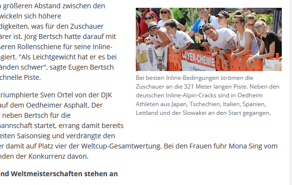 Erstmals seit 2014 begrüßte der TSV Degmarn am Sonntag die Welt-Elite des Inline-Alpin-Sports in Oedheim wieder bei einem Weltcup. Zum 3. Michael-Sandel-World-Cup trafen sich die Cracks der internationalen Szene. Am Samstag waren die Athleten in Oedheim bereits beim BaWü-Cup die Neuenstädter Straße hinuntergeschossen. Am Sonntag erfolgte das lang ersehnte Comeback im Weltcup-Kalender…