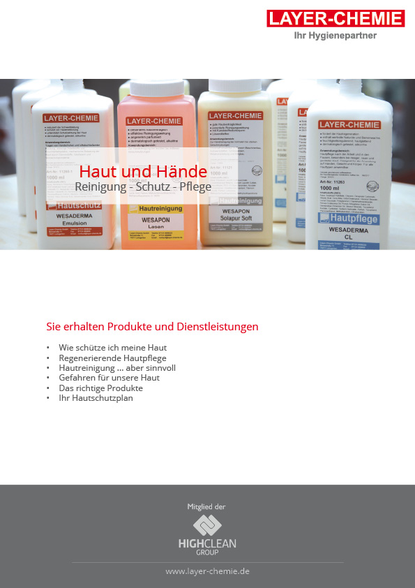 LAYER-CHEMIE ist Hersteller unterschiedlicher Handreinigungs und -pflegemittel, Grundreiniger, Beschichtungen und Unterhaltsreiniger, Spülmittelkonzentrate und Klarspüler, Sanitärreiniger, Produkte für die Fahrzeugreinigung und -pflege, Desinfektionsmittel, sowie Produkte ganz nach Ihren speziellen Wünschen und Anforderungen. Das Gütesiegel „dermatologisch getestet“ steht für beste Qualität von der Idee bis hin zur Ausführung. Unsere Handreinigungsprodukte entsprechen den hohen Ansprüchen, die sich aus der Verpflichtung gegenüber dem Verbraucher ergeben.