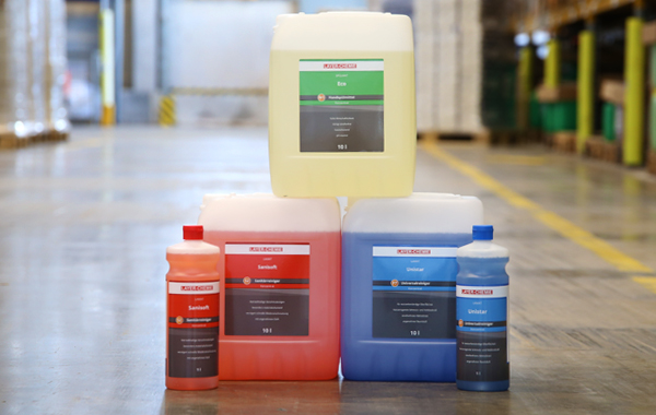 Gleichzeitig entwickeln wir in unserem hauseigenen Labor maßgeschneiderte Reinigungsprodukte, die exakt auf spezifische Anforderungen abgestimmt sind. Gerade im industriellen Umfeld, beispielsweise bei der Reinigung von Maschinen und Werkzeugen, sind oft speziell formulierte Reiniger notwendig. Hier arbeiten wir eng mit unseren Kunden zusammen, um optimale Lösungen zu entwickeln, die Prozesse verbessern, Effizienz steigern und höchste Reinigungsanforderungen erfüllen.