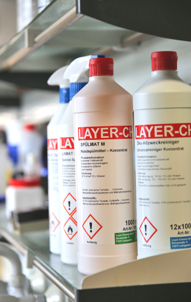 LAYER-CHEMIE ist Hersteller unterschiedlicher Handreinigungs und -pflegemittel, Grundreiniger, Beschichtungen und Unterhaltsreiniger, Spülmittelkonzentrate und Klarspüler, Sanitärreiniger, Produkte für die Fahrzeugreinigung und -pflege, Desinfektionsmittel, sowie Produkte ganz nach Ihren speziellen Wünschen und Anforderungen. Das Gütesiegel „dermatologisch getestet“ steht für beste Qualität von der Idee bis hin zur Ausführung. Unsere Handreinigungsprodukte entsprechen den hohen Ansprüchen, die sich aus der Verpflichtung gegenüber dem Verbraucher ergeben.